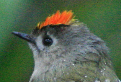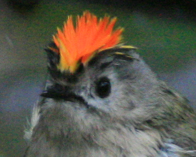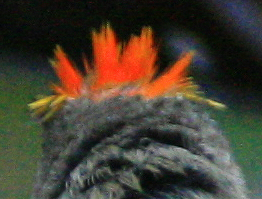 王冠を前から見たところ 赤い羽の先端に黄色の部分が確認できる