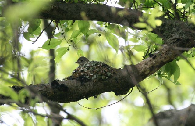 コサメ繁殖2 おなじ巣です。 抱卵中 残念ながら春の強風にて、この枝は折れてしまった。(08/ 5/ 5 植物園)