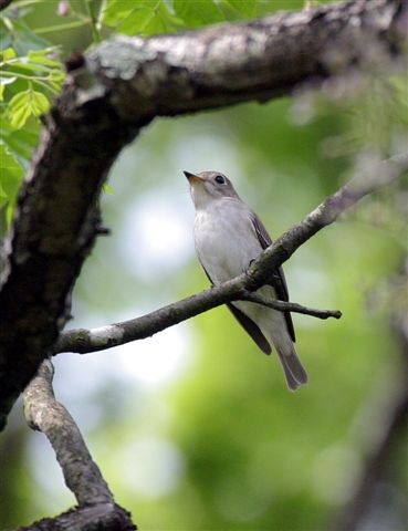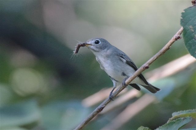 コサメ4 暗い木陰にて撮影、とても美しい鮫色です。風切羽の外縁が白い。サメビタキの外縁は茶褐色。エゾビタキは胸部に斑点がある。3者とも眼はとても大きい。(08/10/ 1 植物園)
