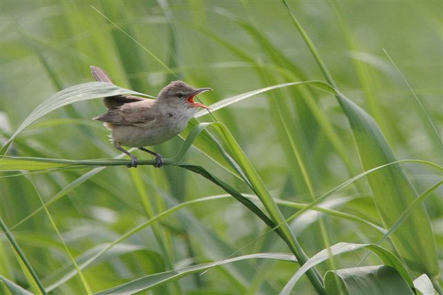 葦より突き出た枯れ茎(ソングポスト)での囀り
