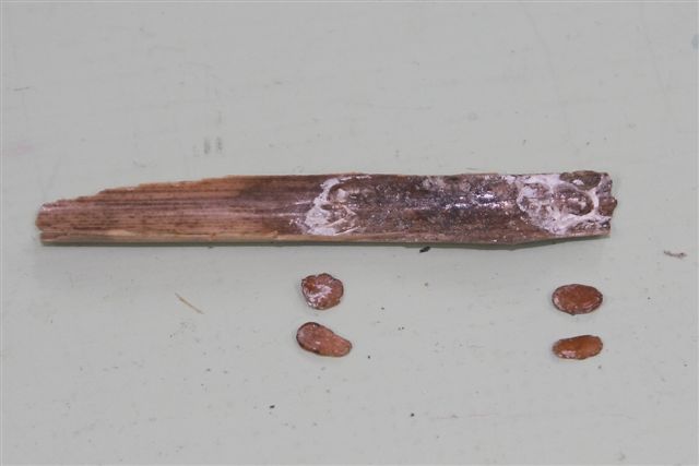 D-3 葉鞘側に付着したものが採取できた、カビのためか鞘は黒く変色している
