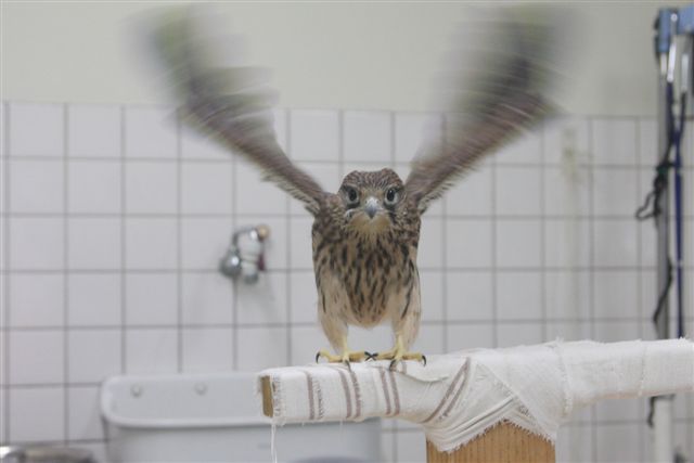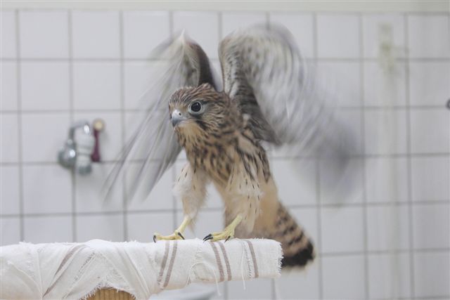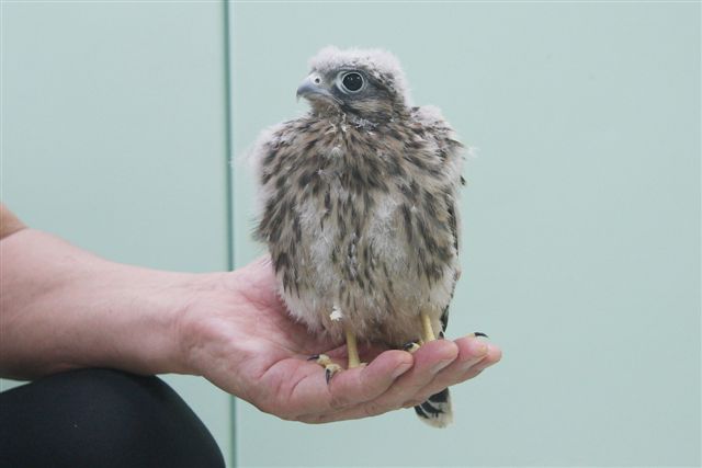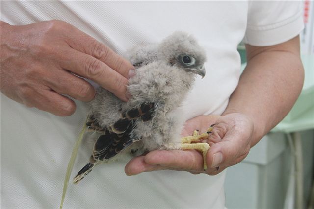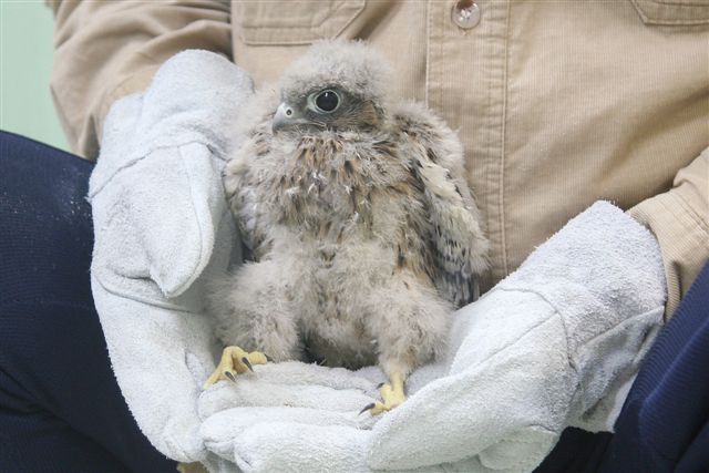 JR二条駅舎で落鳥したチョウゲンボウ雛の保護から放鳥まで 撮影:三宅慶一