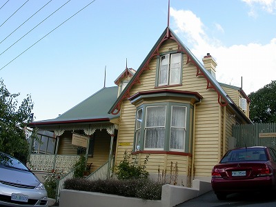 後で聞きましたが、昔病院だったとか、入口は道路の突き当たりでバラ,薔薇、バラ ,薔薇が辺り一面に咲いていました。タスマニアが薔薇に向いている気候かと、思うほど、一般の家の垣根に咲いていました。裏から建物の中にはいると、絨毯は赤、部屋のベットの上に、麦わら帽子だったか、帽子に薔薇の花を飾ったものが置いてありました。大変な宿にきたものだと、驚いていると、女主人が現れて、確かイヤリングとセーターの色が同じだったと思いました。