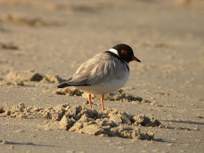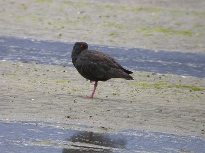 白黒のミヤコドリは日本の三番瀬にもいますが、真っ黒なのはいますかねえ。黒くて、目と足が赤いのです。