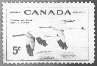 フウピング・クレンの切手は実はこれ以外に、も一つカナダで数年前に発行されている。このツルの越冬地はアメリカ・テキサス州であるが、その自然の繁殖地はカナダ領土内にあるので、カナダ政府もこのツルを自国の動物シリーズ切手の一枚に加える十分な権利をもっているわけである。この切手は青一色刷り、二羽のツルが大空をはばたく図ではるか下方に、その営巣地の湿原が望見される雄大な構図である。