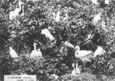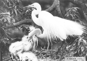 サギ類は異種混群で集団営巣する習性をもっています。林や竹藪の頂きに、木や竹の小枝を材料として粗雑な巣を作り、四〜六個産卵し抱卵から哺育まで約四週間を費やします。親鳥は二〜三回雛鳥の哺育を繰返し、冬の訪れと共に琉球以南台湾方面に連れ立って旅立ちます。近かくの摂津冨田の継体天皇陵、堺市の仁徳天皇陵には十種類のサギを観察するのに良い所です。